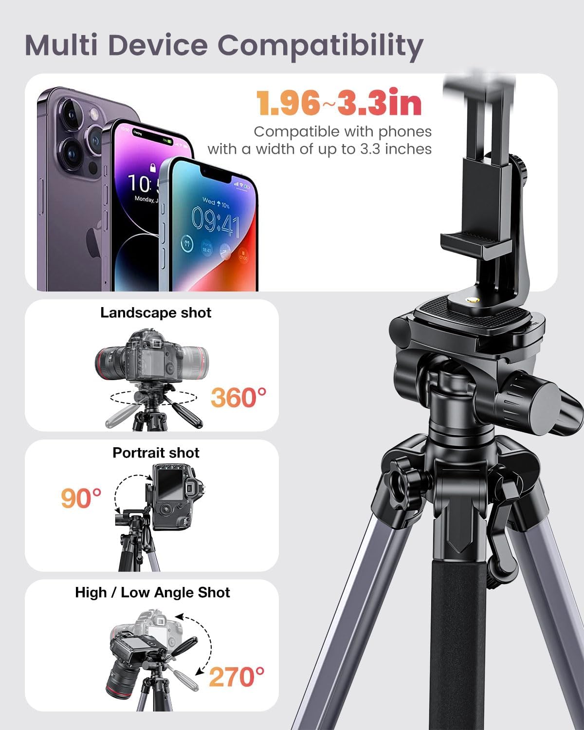The sleek gunmetal gray finish adds a touch of style to your photography gear, while the adjustable height of up to 74 inches allows you to easily set up your shots at the perfect angle. The included phone holder ensures you can easily attach your smartphone for added convenience.