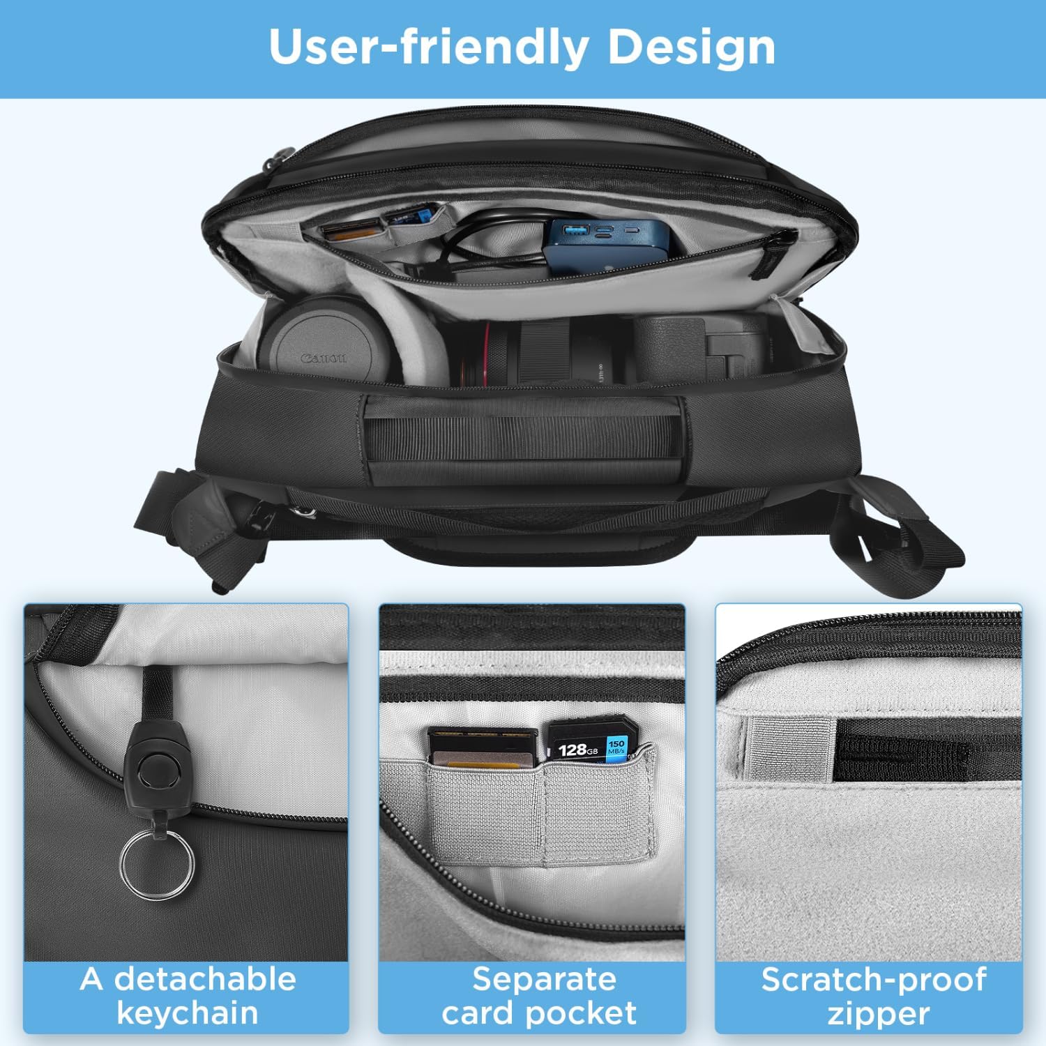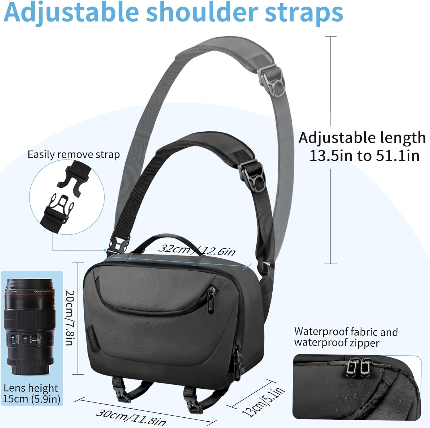 The sleek black design of this camera sling bag is both stylish and practical, with adjustable straps for a comfortable fit and easy access to your gear. Whether you’re a professional photographer or just starting out, this crossbody camera bag is the ideal choice for carrying all your essentials in one convenient and protective case.
